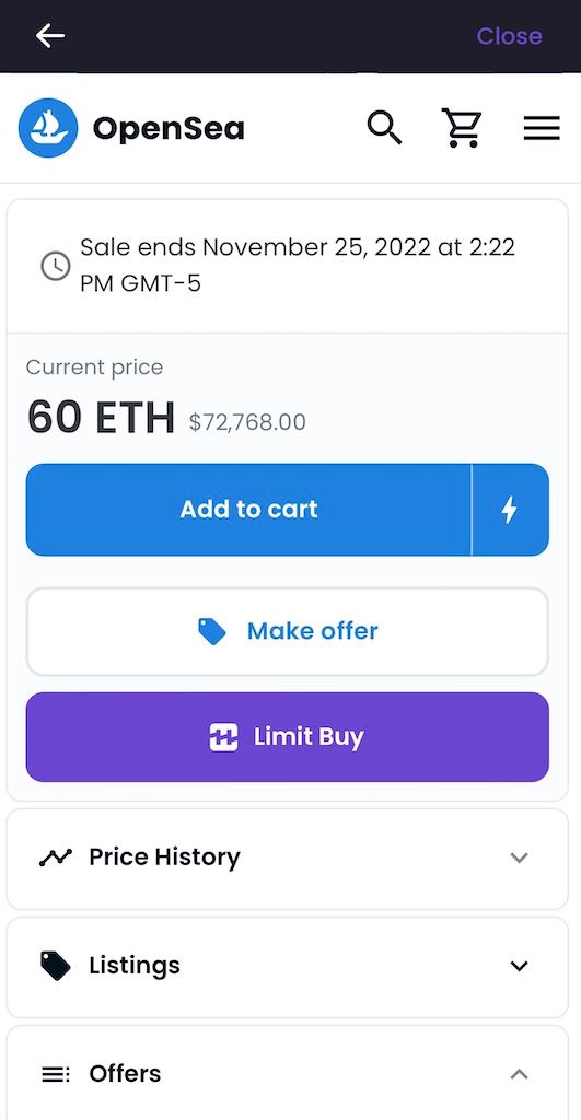 NFT Limit Order Buys on Mobile for OpenSea