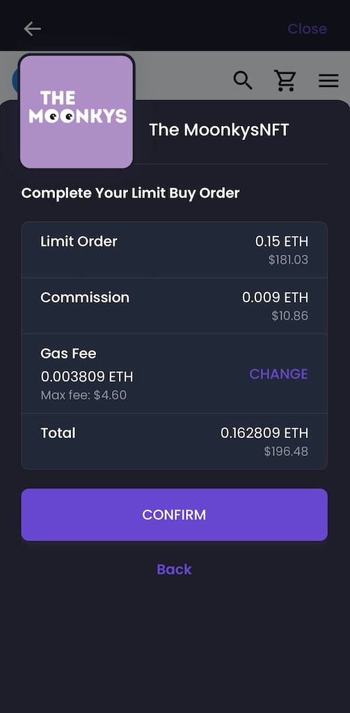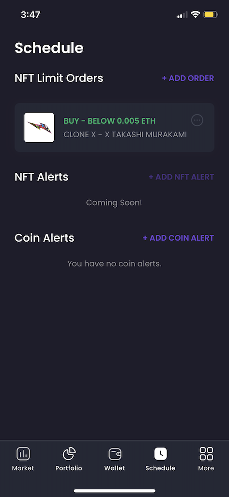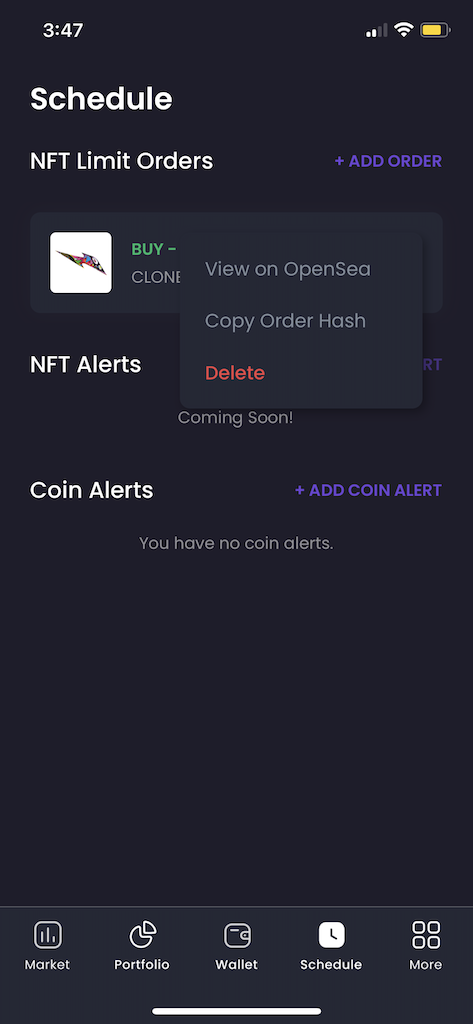 NFT Limit Order Sells on Mobile (Coming Soon)